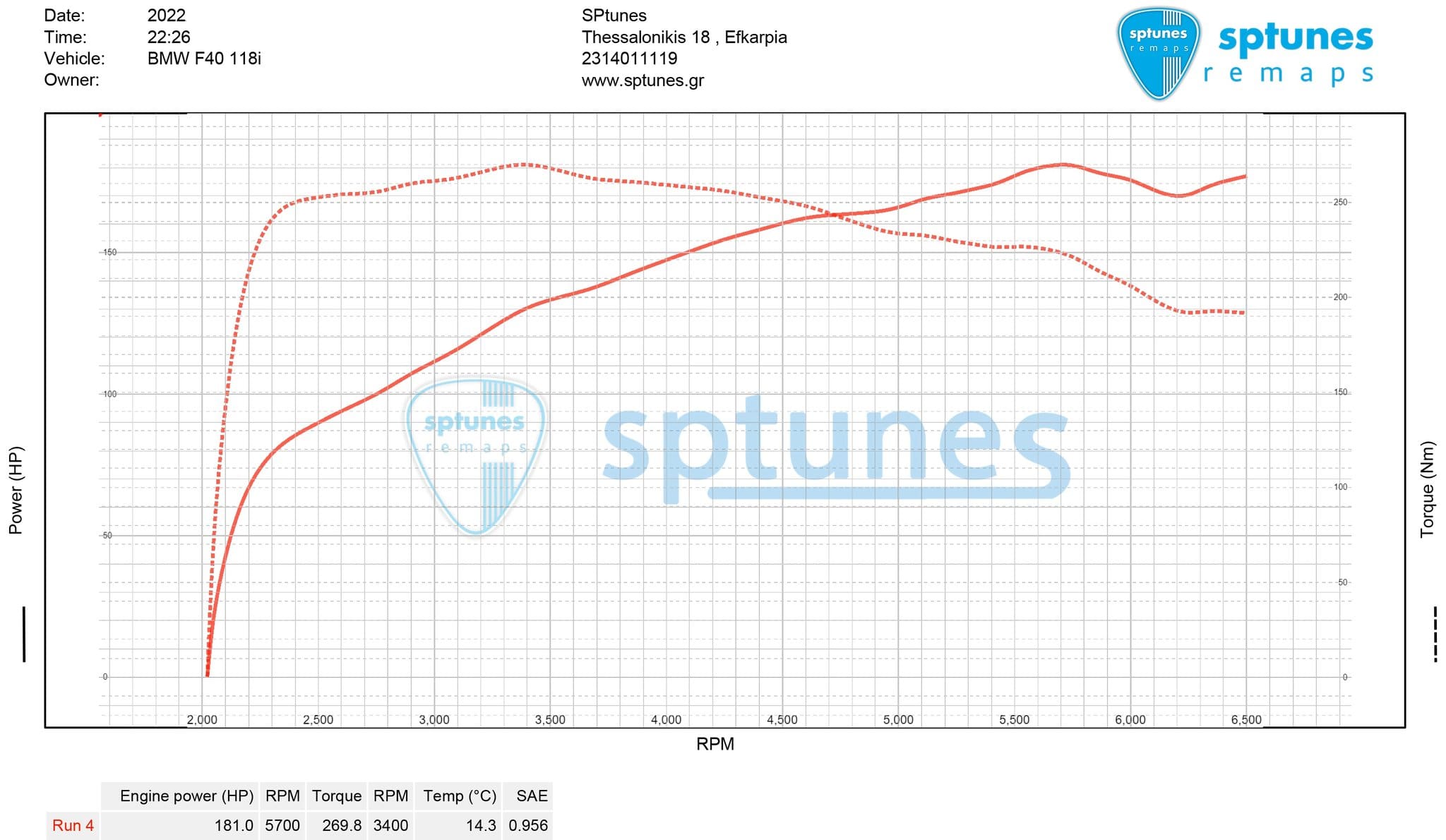 Έχουμε κάνει πολλά 3 κύλινδρα 1.5 B38 μοτέρ, τα οποία αποδίδουν πολύ καλά και απροβλημάτιστα. Η γενιά που είχε μερικά προβληματάκια κυρίως στο πορτάκι του Turbo, κάτι που λύθηκε όμως απο το 2018 και μετά με την έκδοση B38A(B)15M1! Το όμορφο F40 φοράει τον τελευταίας γενιάς B38 που αποδίδει και λίγο καλύτερα και εργοστασιακά, αλλά και με προγραμματισμό! Αφού έγινε προέλεγχος για τη σωστή λειτουργία του κινητήρα, το προγραμματίσαμε στο δυναμόμετο με τελικό αποτέλεσμα τους 181 ίππους και 270 Nm ροπής με πολύ καλό φάσμα! Απόλυτη ασφάλεια για καθημερινή χρήση!