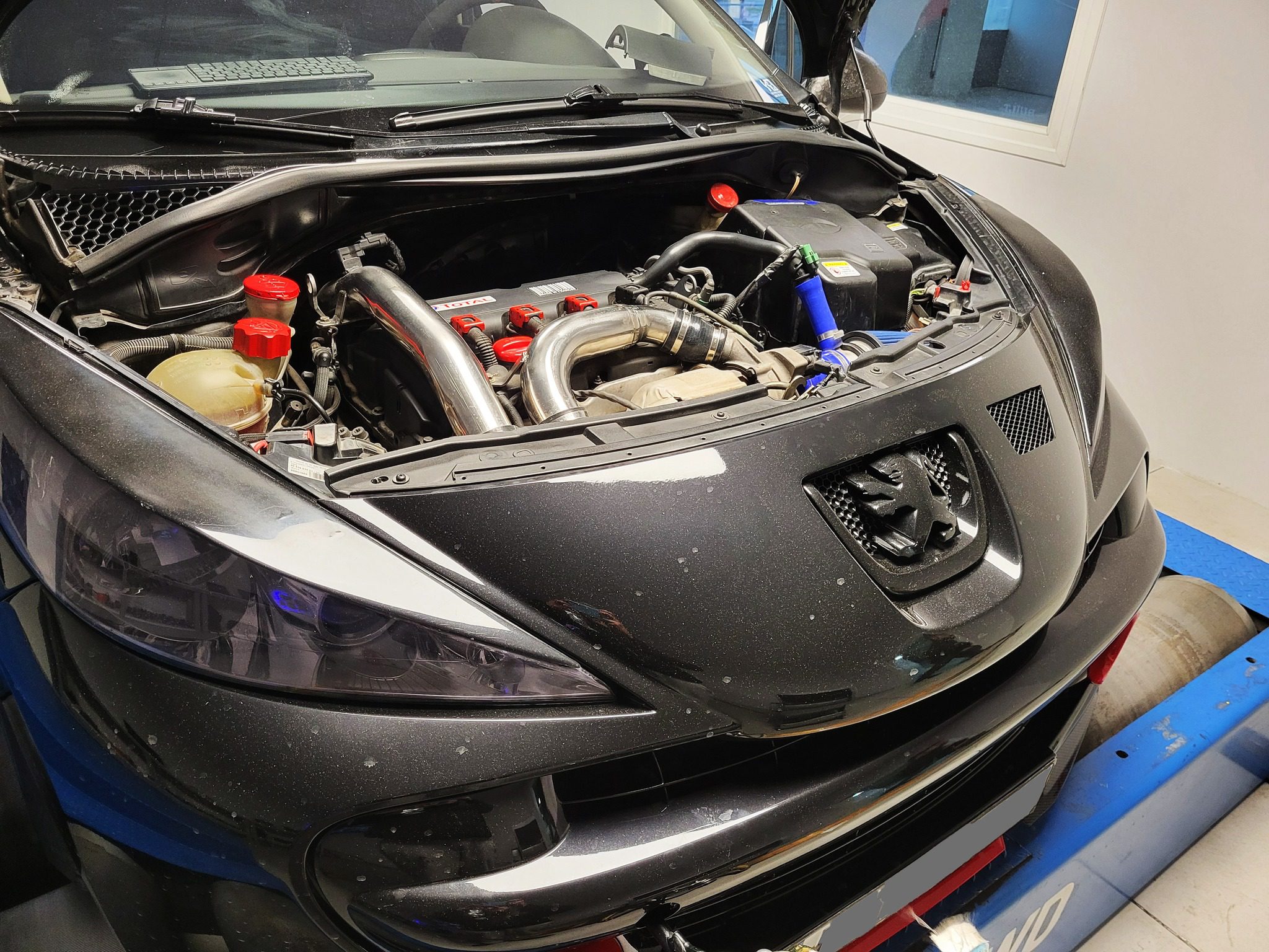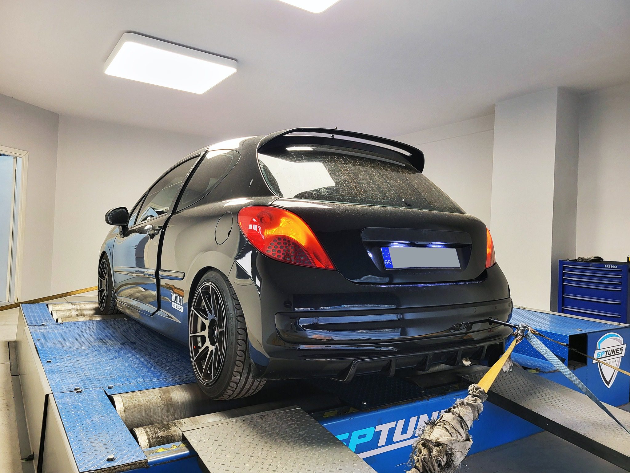 Το συγκεκριμένο Peugeot ειναι GT και φοράει περιφερειακά 2ου σταδίου με σωληνώσεις , intercooler και φουλ εξάτμιση!