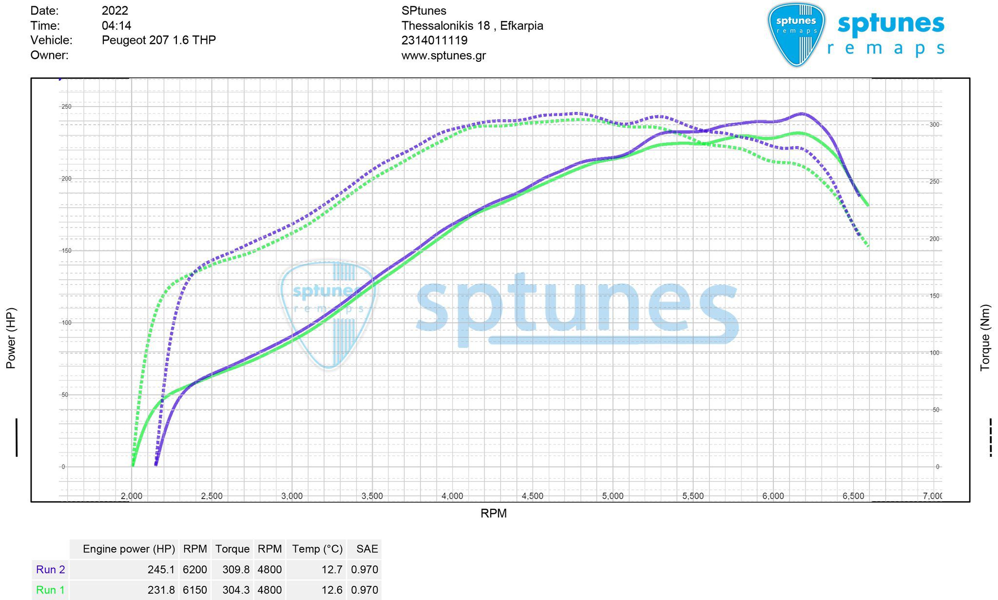 Έχουμε κάνει αμέτρητα Peugeot 207 με το γνωστό 1.6 Prince μοτέρ, που φοράνε τα Mini Cooper S, Citroen, BMW! Το μοτέρ θέλει καλή συντήρηση από επικαθήσεις στις βαλβίδες και συχνό έλεγχο στο χρόνισμα όπως και στον μεταβλητό! Ξέρουμε οτι δεν είναι από τα πιο αξιόπιστα, θέλει πολύ προσοχή στον τρόπο οδήγησης και δεν το πιέζουμε στις ρυθμίσεις. Έτσι και ο ιδιοκτήτης μας εμπιστεύτηκε και προγραμματίσαμε το συγκεκριμένο Peugeot το 2021 με αυτό το setup: Turbo απο Mini Cooper S Works και όλα τα περιφερειακά για 2ο στάδιο με Kit Εισαγωγής αέρα, intercooler και φουλ εξάτμιση! Το αποτέλεσμα πολύ καλό στα 245 άλογα με χρήση 98 RON βενζίνης, με γνώμονα την αξιοπιστία, χαμηλά EGT, μηδενικές επιστροφές knock και λάμδα στο 11.3 – 11.4!