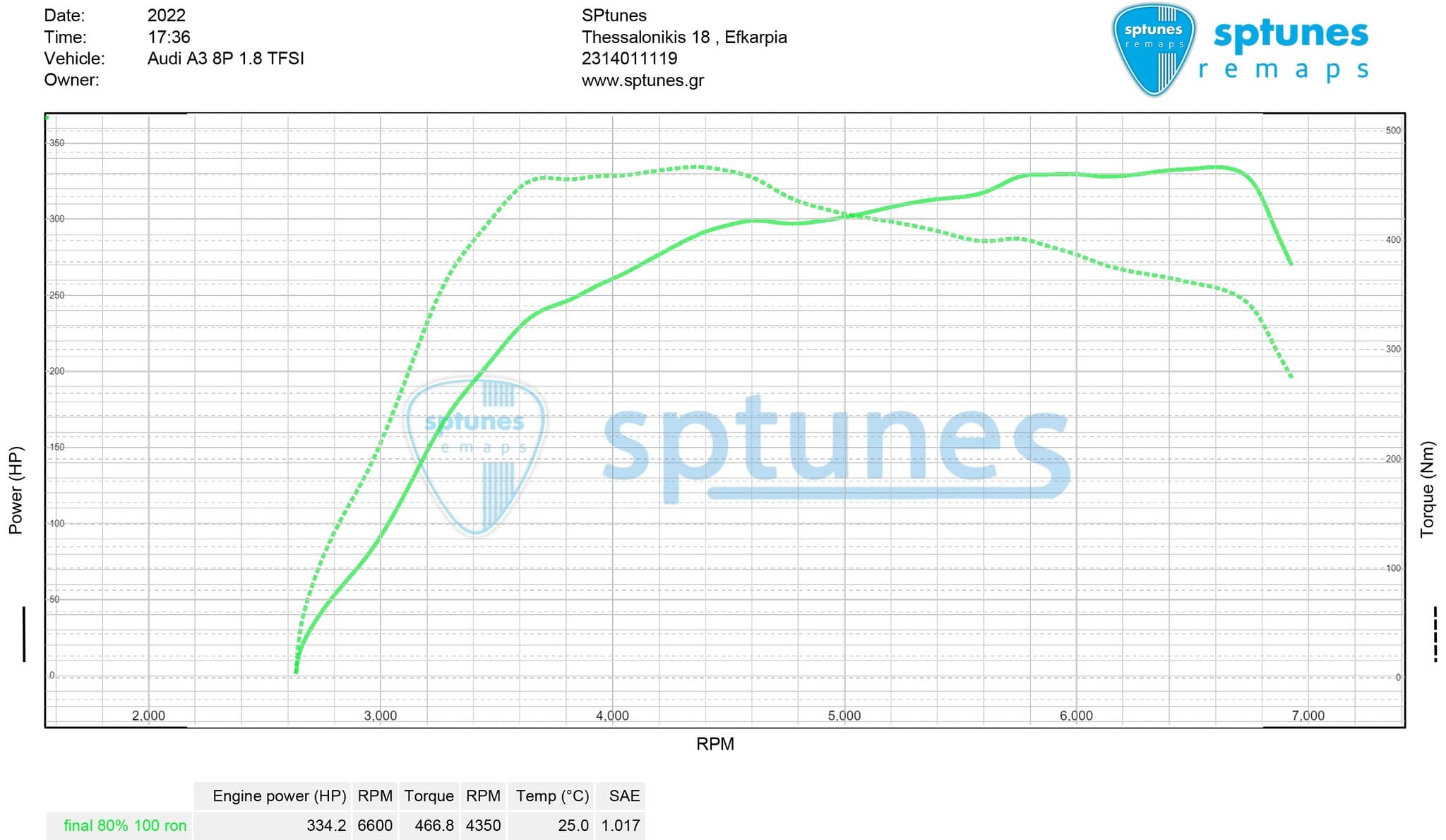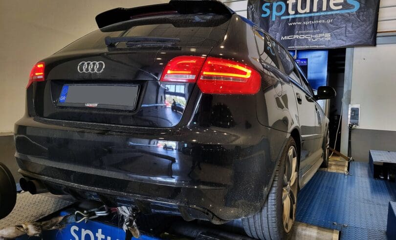 Το Audi φοράει τον 1.8 TFSI EA888 κινητήρα CDA με καδένα! Οι δυνατότητές του πολλές και το έχουμε εξελίξει απο 1ο στάδιο Κ04064 ή και big turbo setup! Μας επισκέφθηκε λοιπόν για custom προγραμματισμό με K04064 Τουρμπίνα, μπεκ απο 2.0 CCZ, φούλ εξάτμιση από downpipe μέχρι πίσω, ελεύθερο 200cpi καταλύτη εισαγωγή αέρα και Intercooler. Την πίεση του Turbo διαχειρίζεται η εργοστασιακή Ν75 και την φτάσαμε μέχρι 1.6 overboost με 1.20 στον κόφτη. Με χρήση 100 Ron βενζίνης και ήπιες ρυθμίσεις φτάσαμε τα 334 άλογα και αφθονη ροή 467 Nm ροπής, για καθημερινή απροβλημάτιστη χρήση!