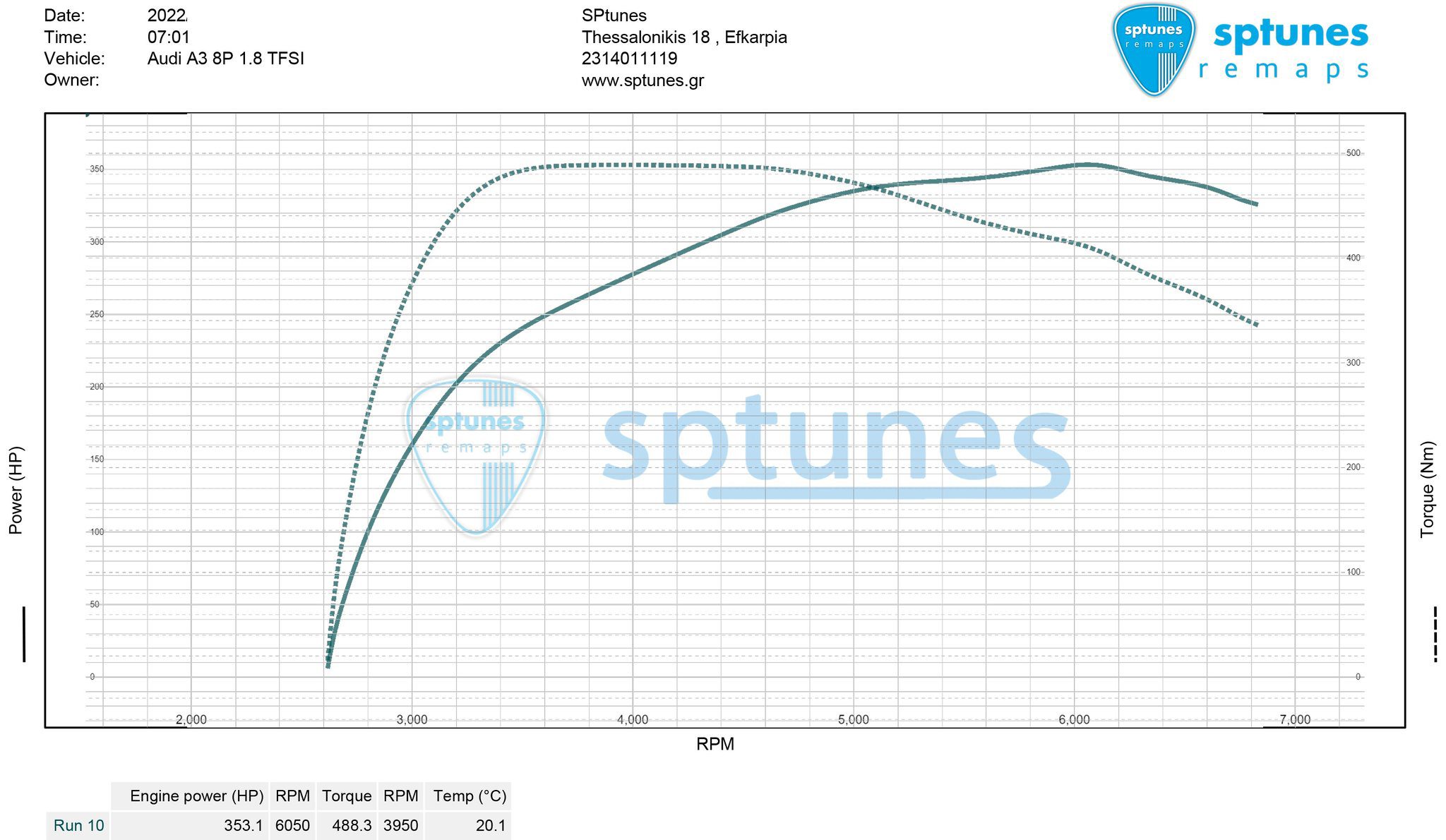 Άλλο ένα παράδειγμα πραγματικού custom stage3+ προγραμματισμού, σε ένα μοτέρ που γνωρίζουμε καλά! Το Audi φοράει τον 1.8 TSI/TFSI EA888 κινητήρα CDA με καδένα! Οι δυνατότητές του πολλές και έχουμε εξελίξει τα BZB/CDA απο 1ο στάδιο Κ04064 ή και big turbo setup! Με περιφερειακά 2ου σταδίου ,Κ04064 Turbo απο S3 και μεγαλύτερα μπεκ απο Opel Insignia, ανέβηκε στο δυναμόμετρο να το προγραμματίσουμε! Την πίεση του Turbo διαχειρίζεται Boost Controller και με πίεση 1.68 over με 1.38 στο κόφτη, απέδωσε 353 ίππους με πάρα πολύ καλή και σταθερή ροπή 488 Nm απο τις 3.200 μέχρι τις 4.800 rpm, όπως φαίνεται και στο διάγραμμα! Δυστυχώς το aftermarket Intercooler που είναι για 300 άλογα, είχε αυξημένες θερμοκρασίες εισαγωγής, αλλίως άλλα 15-20 άλογα τα έχει το Audi A3 εύκολα!