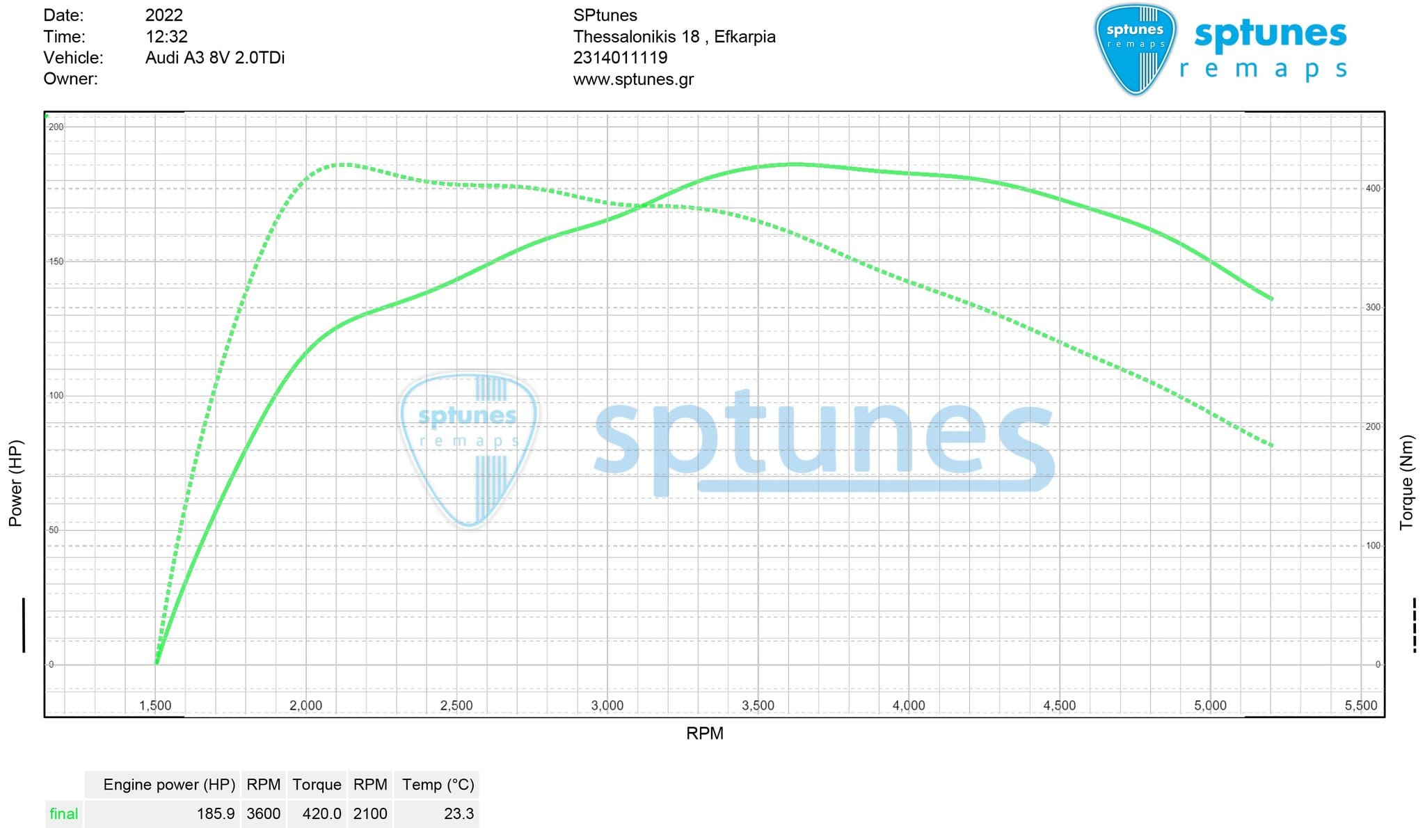 Τα 2.0 TDI VAG μοτέρ τα έχουμε εξελίξει απο 1ο στάδιο μέχρι και υβριδικά turbo με μεγαλύτερα μπεκ. Το A3 8V φοράει τον CRLB κινητήρα με τους 150 ίππους ενώ είναι αυτόματο S-tronic. Πάντα κάνουμε έναν καλό προέλεγχο για τη σωστή λειτουργία του κινητήρα αλλά και τη συγκέντρωση ποσότητας soot στο DPF. Ολοκάθαρο το A3 κάτι που φάνηκε και απο την εργοστασιακή δυναμομέτρηση μιας και απέδωσε 153 άλογα και 364 Nm ροπής! Μετά τον προγραμματισμό εντυπωσιακά έφτασε τους 186 ίππους με τη ροπή στα 420 Nm! Να σημειώσουμε οτι πάντα δίνουμε έμφαση στις θερμοκρασίες καυσαερίων για