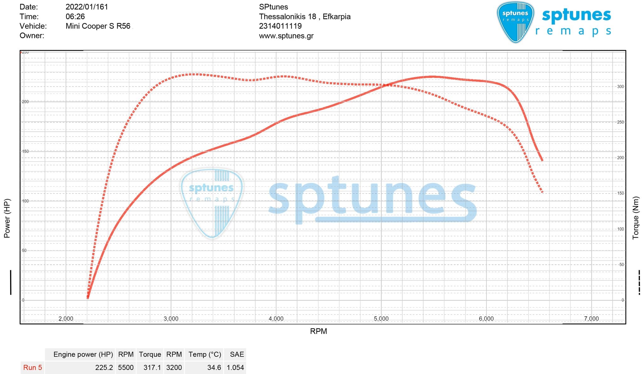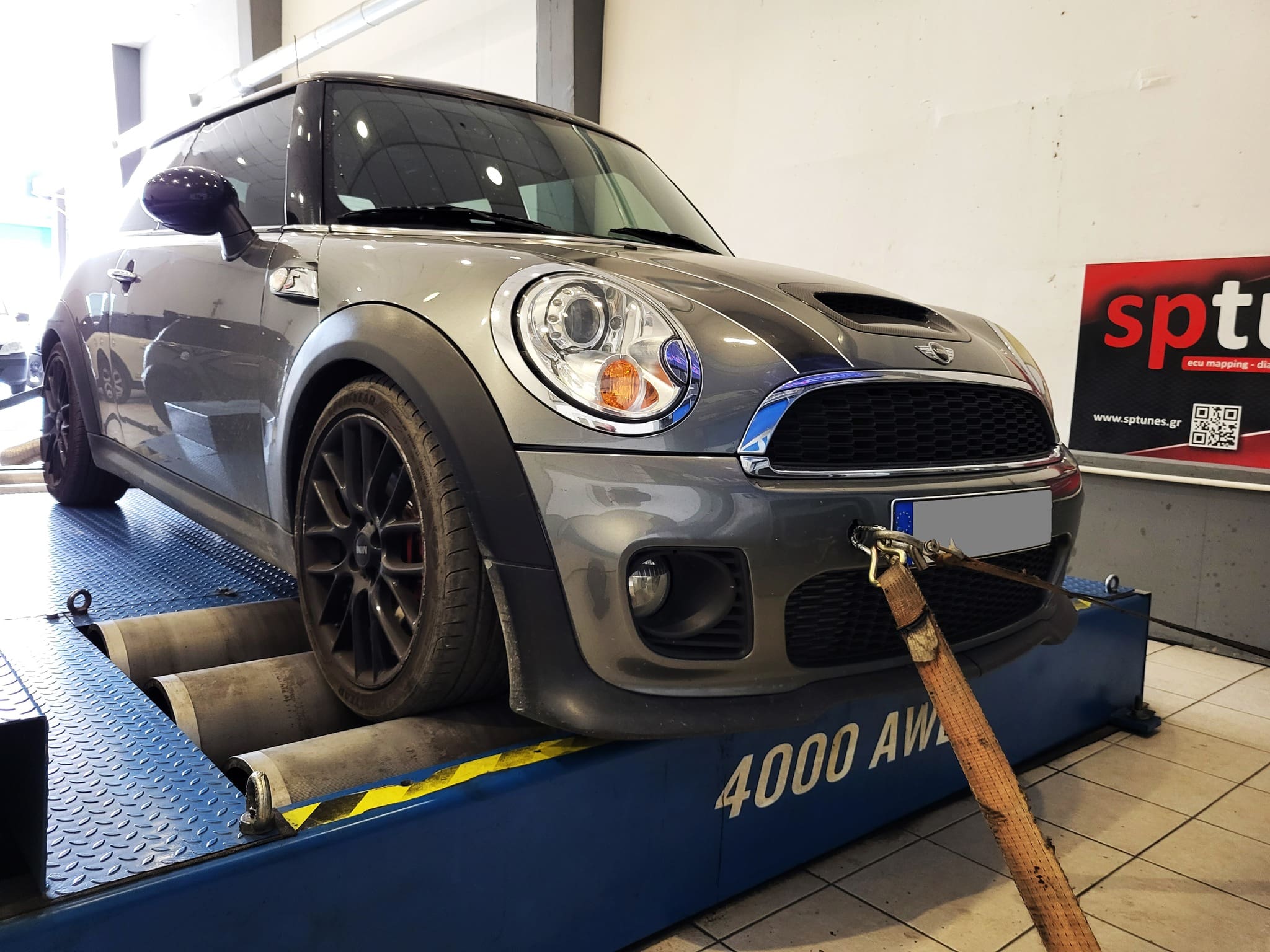 Το Mini φοράει τον N14/ Prince κινητήρα 1.6 Τurbo, απο την κοινοπραξία της BMW με την Peugeot/Citroen. Το μοτέρ αυτό αποδίδει μεν, αλλά έχει τις ιδιαιτερότητές του και θέλει πάντα πολύ καλή και σωστή συντήρηση από επικαθήσεις στις βαλβίδες εισαγωγής και συχνό έλεγχο στο χρόνισμα, στον μεταβλητό και στις ηλεκτροβαλβίδες πίεσης! Ξέρουμε οτι δεν είναι από τα πιο αξιόπιστα, θέλει πολύ προσοχή στον τρόπο οδήγησης και δεν το πιέζουμε στις ρυθμίσεις. Το συγκεκριμένο Mini είναι αυτόματο και εξοπλίζεται με εξάτμιση απο το Downpipe μέχρι πίσω, 200cpi καταλύτη και ελεύθερο φίλτρο αέρος! Ρυθμίστηκε με γνώμονα την ασφάλεια με την πίεση διαχειρίζεται η εργοστασιακή Ν75 στο 1.33. Τελικό αποτέλεσμα 225 ίπποι με 317 Nm ροπής σε χαμηλή και πολύ safe πίεση!