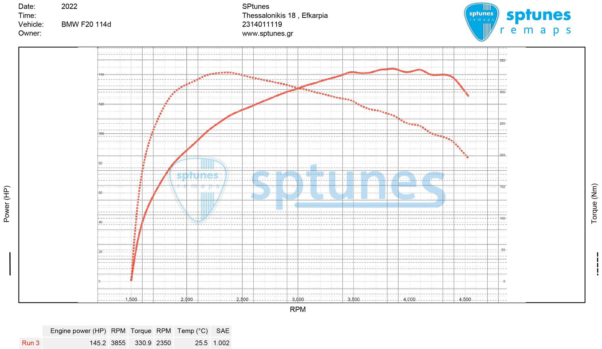 Άλλο ένα F-series για προγραμματισμό αυτή τη φορά F20 LCI 114d με το 3 κύλινδρο 1.5 B37 diesel κινητήρα και τους 95 ίππους που συναντάμε κ στα Mini! Να υπενθυμίσουμε οτι το 114d με το 116d μοιράζονται ακριβώς τον ίδιο κινητήρα, έτσι φτάνουμε τα 140+ άλογα μόνο με προγραμματισμό και στα 2 μοντέλα! Αφού έγινε προέλεγχος για τη σωστή λειτουργία του κινητήρα και το φίλτρο μικροσωματιδίων DPF, το δυναμομετρήσαμε εργοστασιακό στα 101 άλογα, υγειέστατο! Μετά τον προγραμματισμό φτάσαμε τους 145 ίππους και άφθονη ροπή 331 Nm στο peak της! Απόλυτα ασφάλεια για καθημερινή χρήση, χαμηλό πυρόμετρο, φιλικό στο φίλτρο DPF και χωρίς “πετσόκομα” στις δικλείδες ασφαλείας.