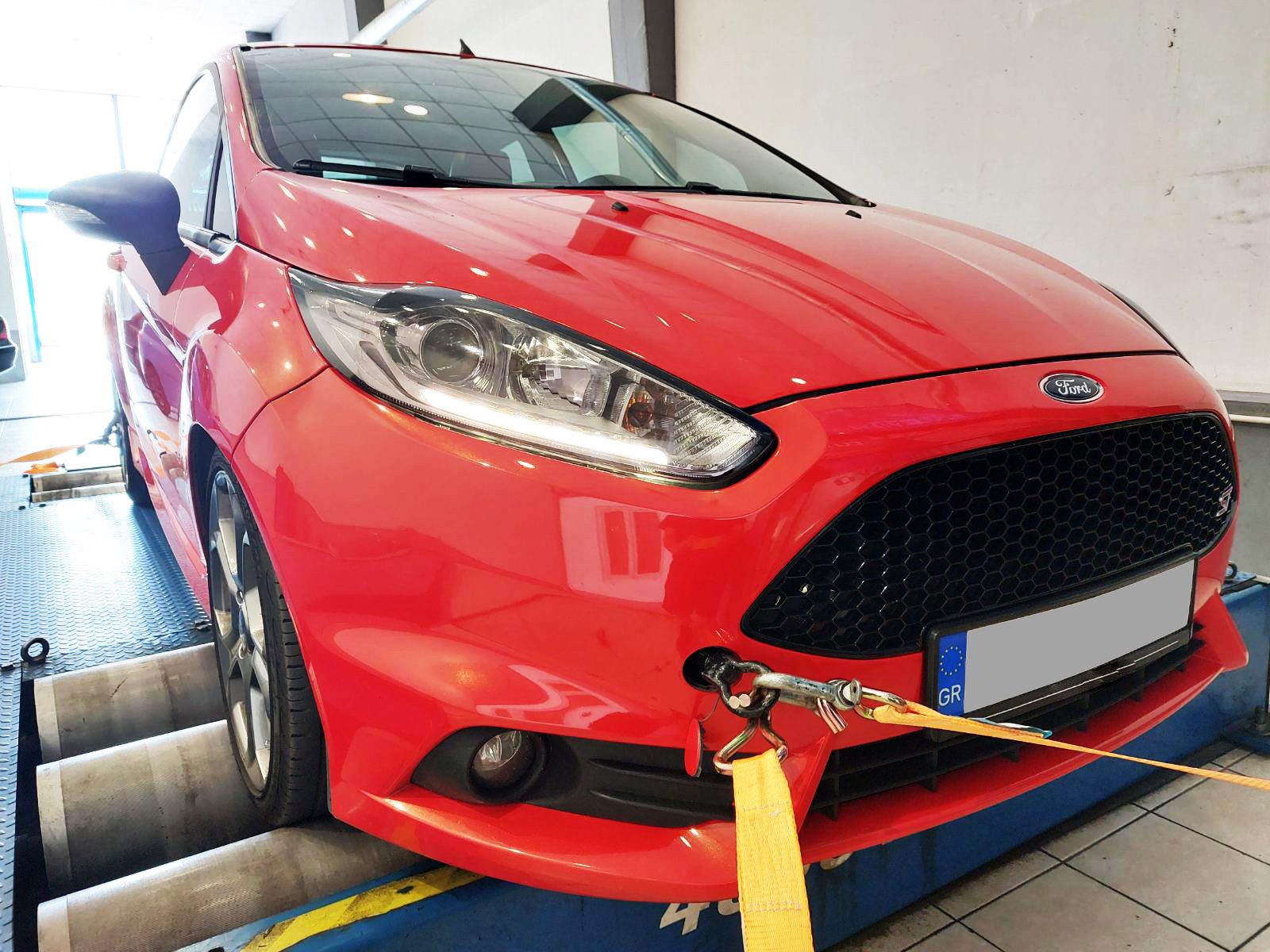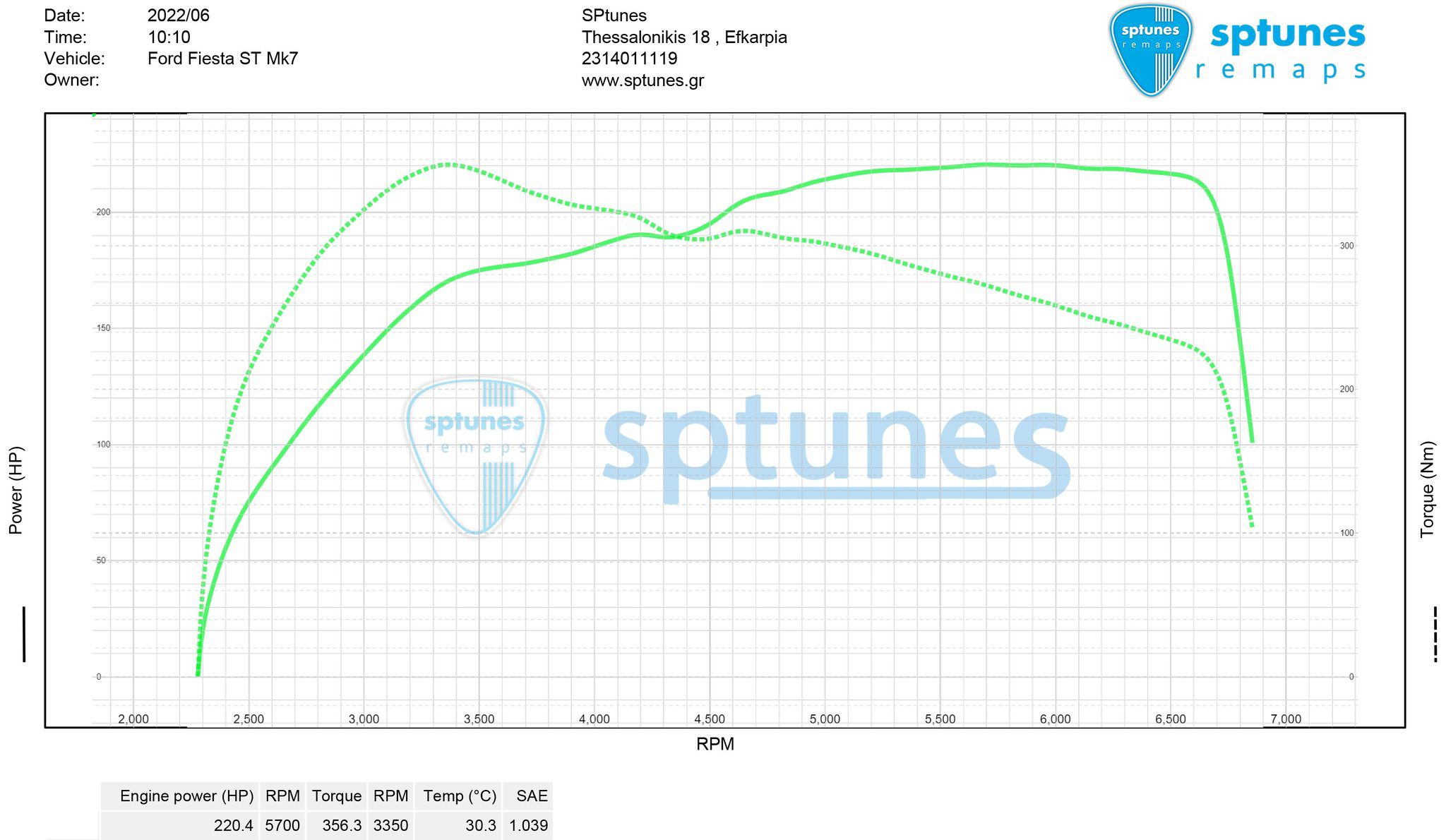 Κάτι ξέρουμε απο ecoboost τόσα χρόνια, έτσι ένα ακόμα ST MK7.5 ήρθε για προγραμματισμό μιας και έχουμε κάνει πολλά απο 1ο στάδιο μέχρι και υβρίδια setup. Tο όμορφο Fiesta ST MK7.5 ήταν ήδη προγραμματισμένο με εισαγωγή και περιφερειακά πρώτου σταδίου, ενώ ήρθε σε εμάς για το κάτι παραπάνω μιας και κατέχουμε τα Ecoboost! Ηδη προγραμματισμένο απέδωσε στον προέλεγχο 209 ίππους με 350 Nm ροπή – καθόλου άσχημα – βασανίζοταν όμως απο safe mode κυρίως σε πορεία λόγω απόκλισης πίεσης που διάβαζε ο MAP sensor. Μετά τον προγραμματισμό, παρά τις αντίξοες συνθήκες θερμοκρασίας αλλά και υγρασίας, φτάσαμε αισίως στους 220 ίππους με άφθονη απο χαμηλά πλέον ροπή 356 Nm, με το ST να δουλεύει εργοστασιακά.