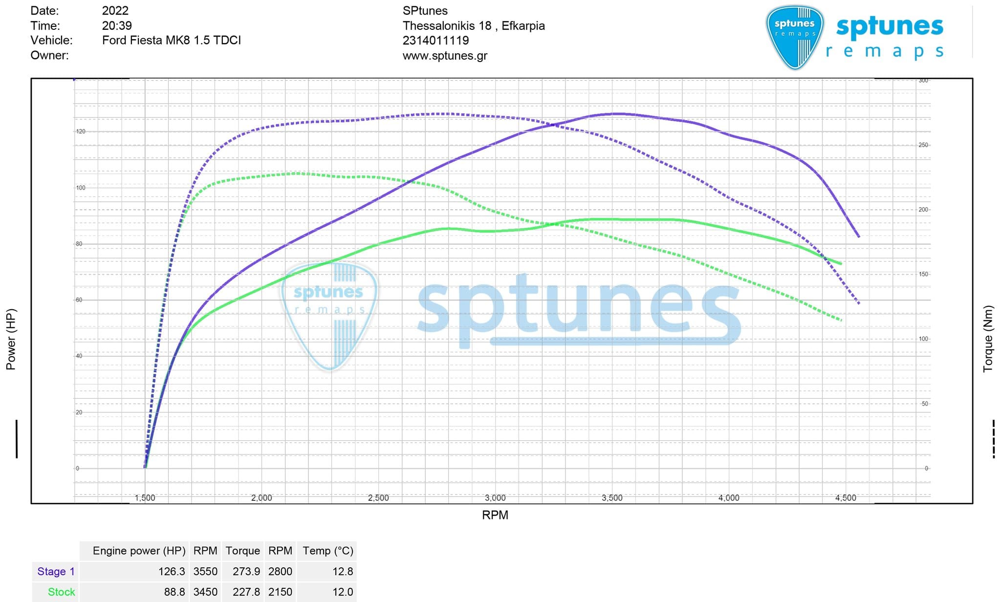 Προγραμματίσαμε άλλο ένα 1.5 TDCI μοτέρ της Ford! Τα TDCI και Ecoboost είναι το φόρτε μας και έχουμε κάνει δεκάδες απο 1ο στάδιο μέχρι και πλήρως custom setup! Το “μικρό” 1.5 TDCI με τους 85 ίππους έχει μικρότερο Turbo απο το αντίστοιχο με τους 120 ίππους, αλλά με έναν σωστό προγραμματισμό οι επιδόσεις του το φτάνουν και το ξεπερνούν! Στον προέλεγχο φάνηκε ολοκάθαρο το DPF και έτσι εργοστασιακό μετρήθηκε στα 88.8 άλογα, ενώ μετά τον προγραμματισμό πήγαμε εντυπωσιακά στα 126 άλογα με ροπή στα 274 Nm, σε ένα πολύ εντυπωσιακό φάσμα. Πάντα με ασφάλεια στο φίλτρο μικροσωματιδίων DPF, χωρίς ακρότητες, με τις δικλείδες ασφαλείας όλες ενεργοποιημένες.