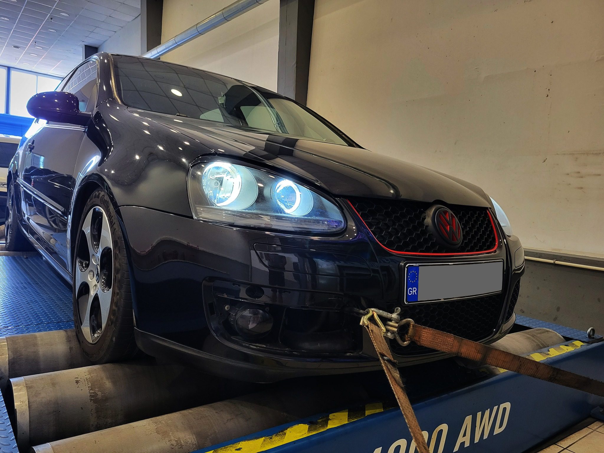 Το Twincharged Turbo-Compressor BMY/BLG κινητήρα, τον έχουμε κάνει απο 1ο στάδιο μέχρι και fully custom setup. Το συγκεκριμένο Golf είναι σφυρίλατο με μπεκ και αντλία υψηλής, υβρίδιο Turbo με external, εξάτμιση απο το downpipe μέχρι πίσω, εισαγωγή αέρα και intercooler! Έχουν τοποθετηθεί κόκκινοι πολλαπλασιαστές και ψυχρότερα μπουζί, ενώ τη διαχείριση της πίεσης την κάνει boost controller. Τέλος τοποθετήθηκαν μεθανόλες σε πολύ χαμηλό ψεκασμό, για να βοηθήσουν τις θερμοκρασίες εισαγωγής πιο πολύ, παρά να το τσιτώσουμε απο πλευράς advance και καυσίμου! Με αρκετά runs και επαναληψιμότητα φτάσαμε στους 340 ίππους με peak ροπής τα 440 Nm στις 4500 rpm!