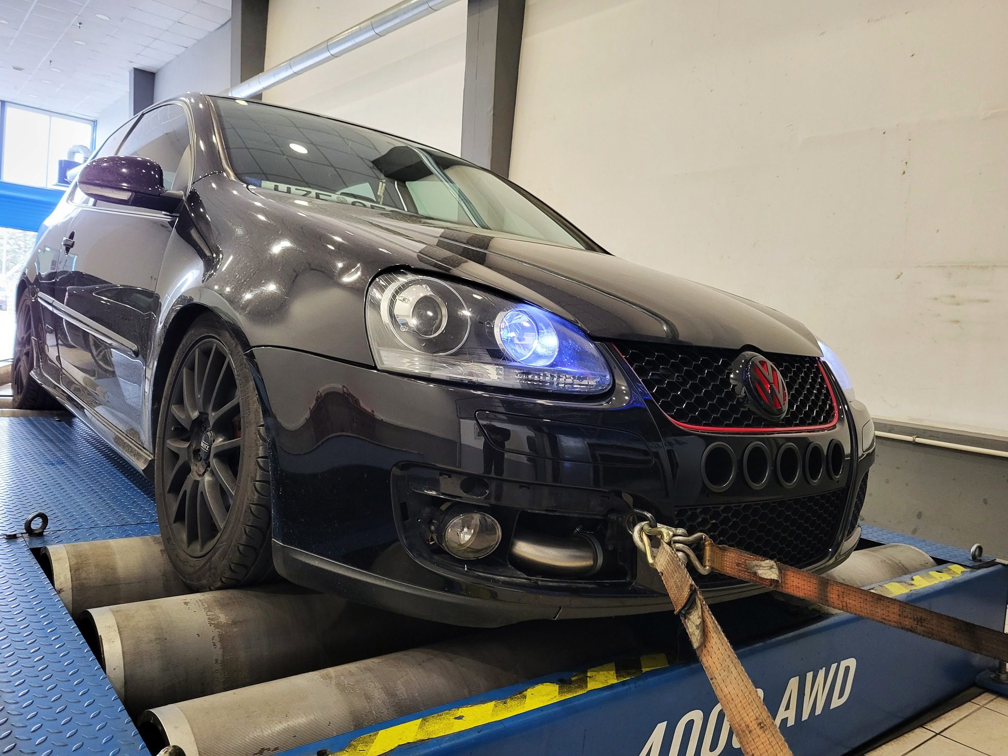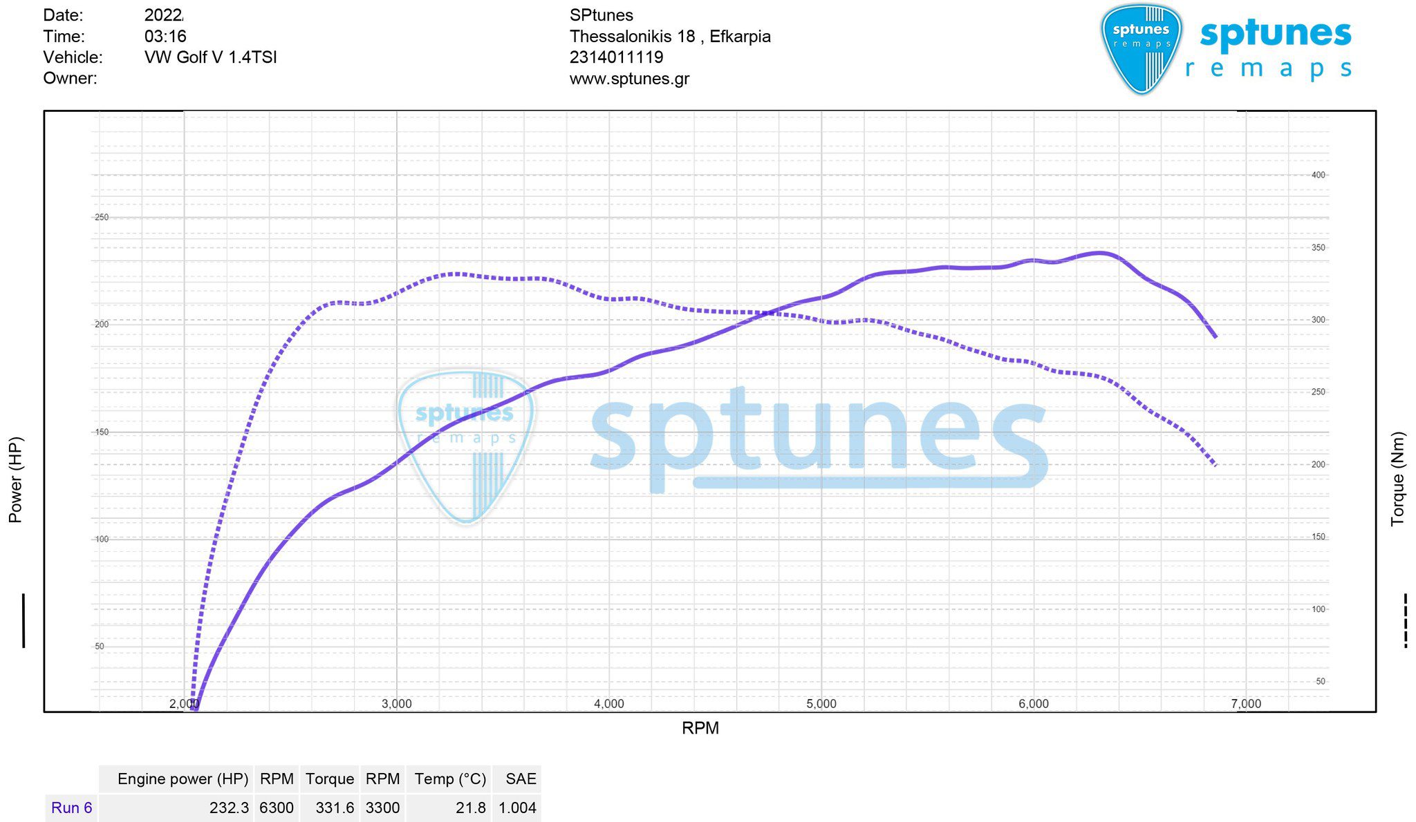 Το Twincharged Turbo-Compressor BMY/BLG κινητήρα, τον έχουμε κάνει απο 1ο στάδιο μέχρι και fully custom setup. Το συγκεκριμένο Golf είναι εργοστασιακό με περιφερειακά 2ου σταδίου, εξάτμιση απο το downpipe μέχρι πίσω, εισαγωγή αέρα και intercooler! Έχουν τοποθετηθεί κόκκινοι πολλαπλασιαστές και ψυχρότερα μπουζί, η διαχείριση της πίεσης γίνεται απο την εργοστασιακή ηλεκτροβαλβίδα Ν75! Μετά απο αρκετά runs και full custom προγραμματισμό, φτάσαμε Safe στους 232 ίππους με peak ροπής 331 Nm!