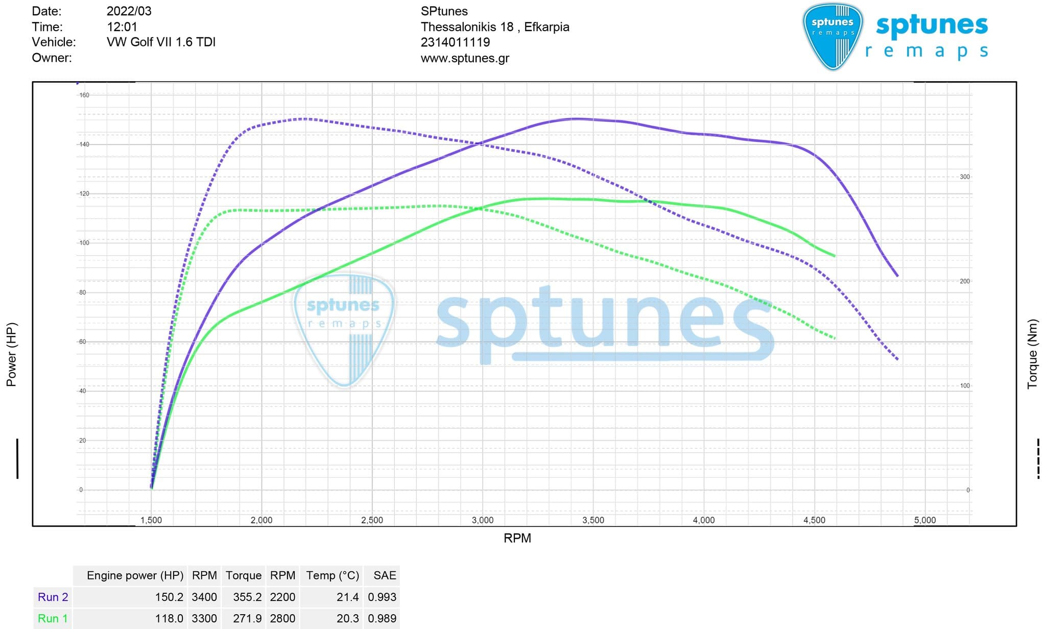 Τα 1.6 TDI VAG μοτέρ τα έχουμε εξελίξει απο 1ο στάδιο μέχρι και με υβριδικά turbo ή και turbo από 2.0 TDI. Ο νικητής της κλήρωσης του Dynoday που οργάνωσε πρόσφατα το Kontres-Dragster ήρθε να εξαργυρώσει το δώρο του! Το όμορφο Golf VII φοράει τον CXX κινητήρα με τους 115 ίππους! Πάντα κάνουμε έναν καλό προέλεγχο για τη σωστή λειτουργία του κινητήρα. Το Golf μας ήρθε έτοιμο για 2ο στάδιο με πιο ελεύθερο Downpipe και ελεύθερο φίλτρο! Φάνηκε και απo την εργοστασιακή δυναμομέτρηση οτι θα αποδώσει πολύ καλά μιας και έβγαλε 118 ίππους και 272 Nm ροπής με τα περιφερειακά που φοράει. Μετά τον προγραμματισμό και πάλι εντυπωσιακά έφτασε τους 150 ίππους με τη ροπή στα 355 Nm, ενώ να σημειώσουμε οτι πάντα δίνουμε έμφαση στις θερμοκρασίες καυσαερίων οι οποίες και είναι πολύ χαμηλές!
