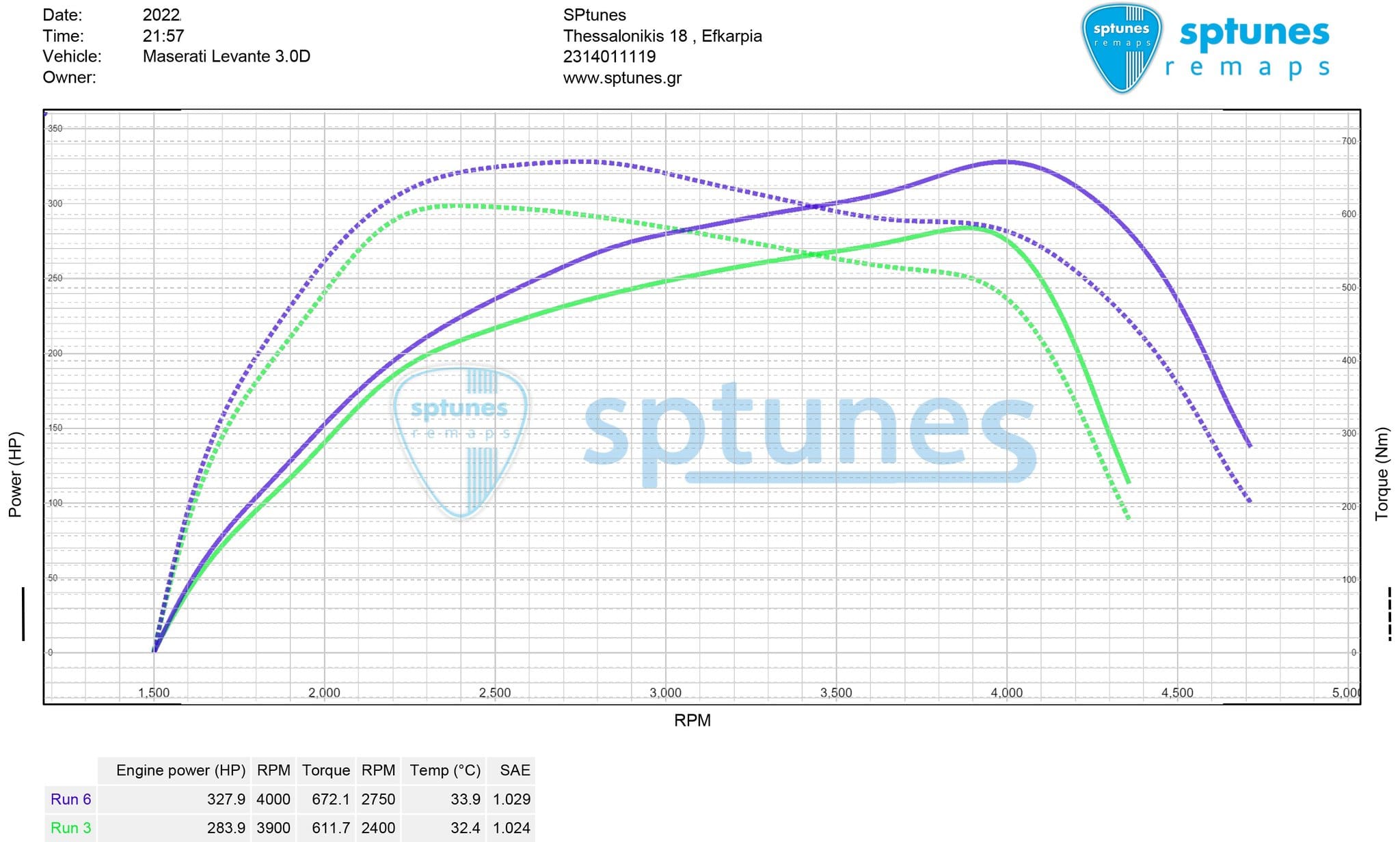Ένα ακόμα πολυκύλινδρο Diesel ήρθε για προγραμματισμό! Το όμορφο Maserati φοράει τον 3λιτρο V6 κινητήρα VM A630 με απόδοση 278 εργοστασιακών ίππων. Πάντα κάνουμε προέλεγχο καλής λειτουργίας και το Levante αποδείχτηκε άψογο με μηδενική κάπνα και Soot στο φίλτρο μικροσωματιδίων και έτσι προχωρήσαμε για προγραμματισμό! Εργοστασιακό απέδωσε 284 ίππους με 612 Nm ροπής ,ενώ μετά τη τελική ρύθμιση φτάσαμε στην εντυπωσιακή ροπή των 672 Nm με τους ίππους να αγγίζουν τους 328!