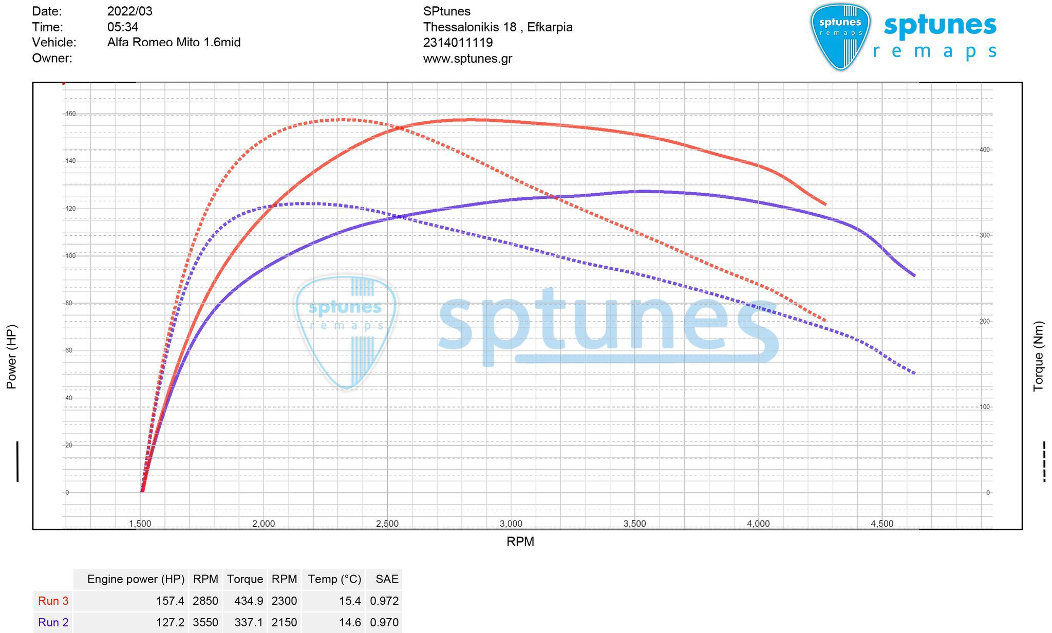 Τα Diesel έχουν και αυτά ψυχή, ειδικά αν πρόκειται για τον 1.6 Multijet/JTDm κινητήρα που μοιράζεται όλο το Fiat Gruppo αλλά και άλλες εταιρίες. Στον προέλεγχο και με μόνη προσθήκη downpipe μετρήθηκε 127 ίππους και προχωρήσαμε στον προγραμματισμό! Τελικό αποτέλεσμα 157 ίπποι και ροπή στα 435 Nm, με ελάχιστο πυρόμετρο καυσαερίων!