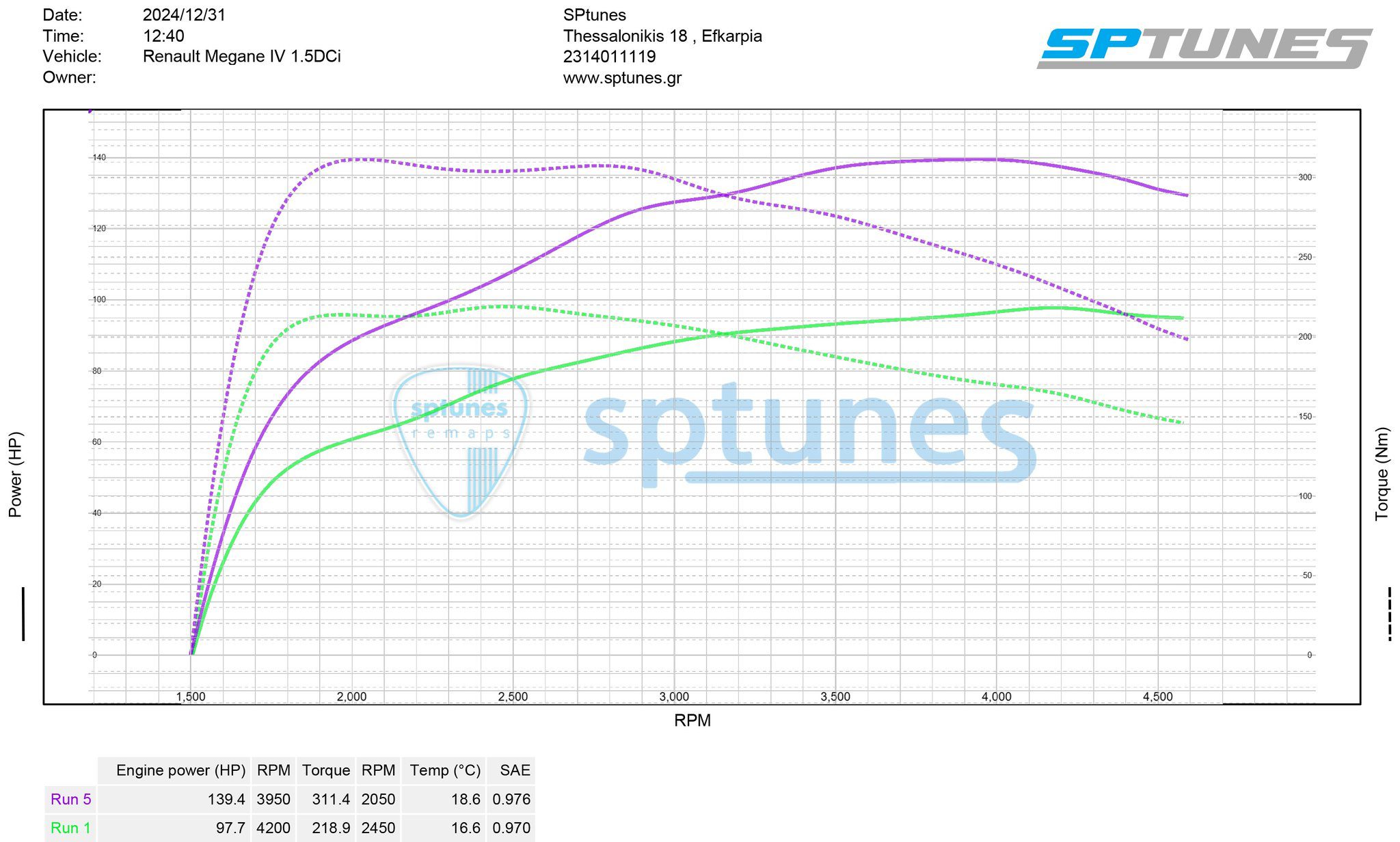 Τελικό αποτέλεσμα 139 ίπποι με πολύ σταθερή ροπή 311 Nm απο τις 1600 στροφές μέχρι και τις 2800 , με απίστευτό φάσμα σε σχέση με το εργοστασιακό!