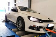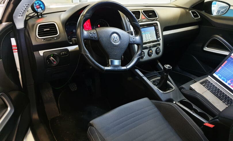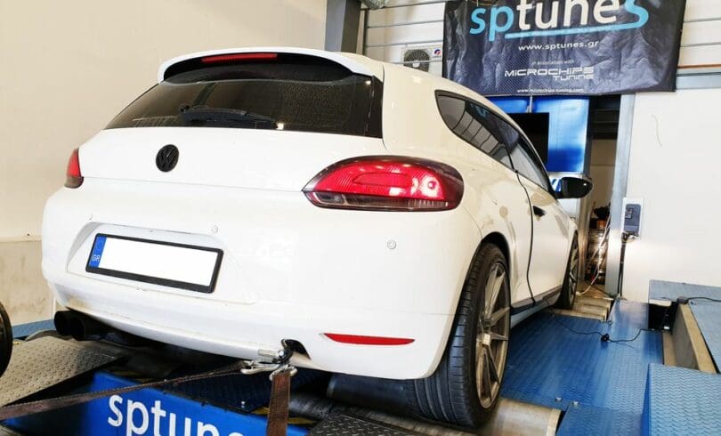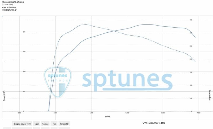 VW Scirocco 1.4 TSI (CAVD) Custom remap Downpipe/catback exhaust decat Optimised for 100 RON 160 Ps ——> 219 Ps 240 Nm—–> 332 Nm Το Twincharged Turbo-Compressor μοτέρ CAVΑ/CAVD/CAVE/CAVF είναι η εξέλιξη των BMY / BLG που φορούσαν τα Golf V. Σε πρώτο στάδιο ρεαλιστικά και δυναμομετρημένα φτάνουν τα 190-205 άλογα με χρήση απλής βενζίνης ενώ με φουλ εξάτμιση αγγίζουν τα 220 άλογα. Το συγκεκριμένο φοράει Downpipe είναι Decat με εξάτμιση μέχρι πίσω και ρυθμισμένο για 100 RON. Τα υπόλοιπα είναι εργοστασιακά.