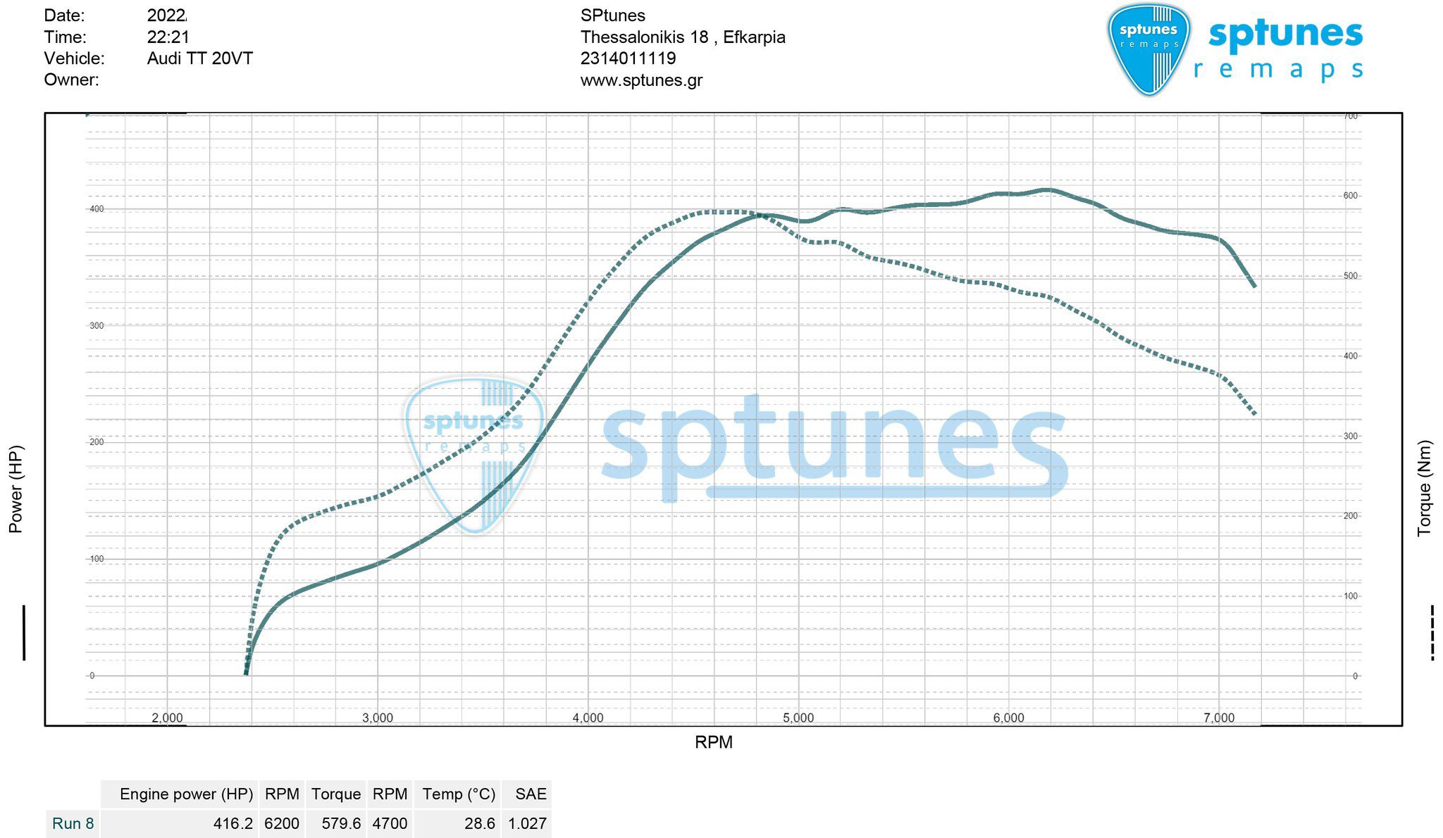 Πολλά 20vt ακόμα στην αγορά, λίγα όμως δουλεύουν. Θελει πολυ προσοχη στα ανταλλακτικά πλέον και μεράκι απο τη πλευρά του ιδιοκτήτη, καθώς το “φθηνό γκάζι” που έχουν μπορεί να βγει ακριβό! Το όμορφο TT είναι σφυρίλατο με Pulsar big Turbo και external, 650 bosch μπεκ ενώ ρυθμίστηκε Mafless με το esp να δουλεύει κανονικά! Δώσαμε τρομερή έμφαση όπως πάντα σε σωστά Trims και διόρθωση λάμδα. Το ΤΤ δουλεύει στη κυριολεξία σαν εργοστασιακό παρά το setup του! Φτάσαμε εύκολα τα 416 άλογα με τη ροπής με στο peak τα θεαματικά 580 Nm! Τέλος προστέθηκαν launch control/flat shift ️στον εργοστασιακό εγκέφαλο ενώ καταργήσαμε τις περιττές ηλεκτροβαλβίδες Ν249 Ν112 και SAI/Ν80.