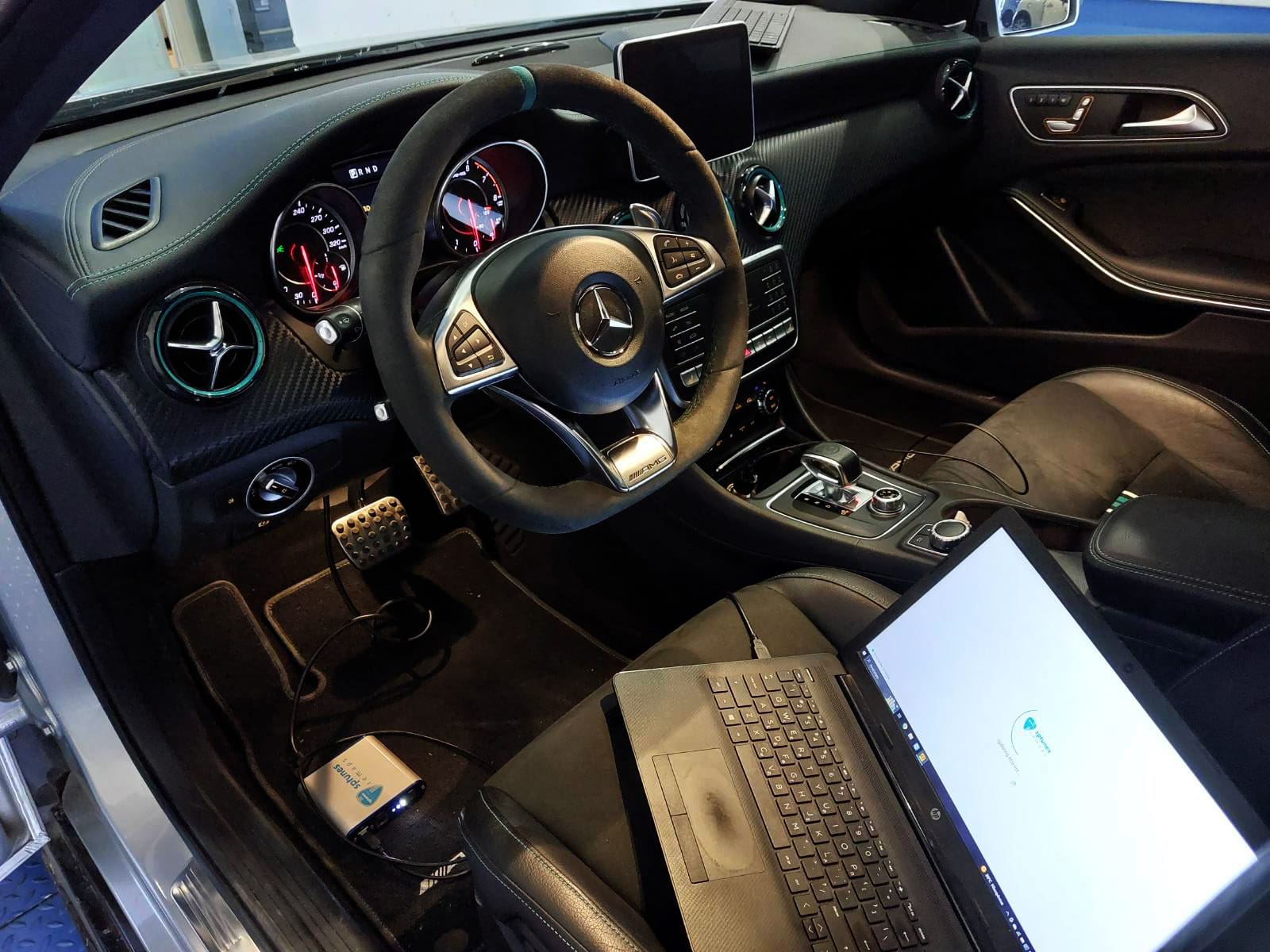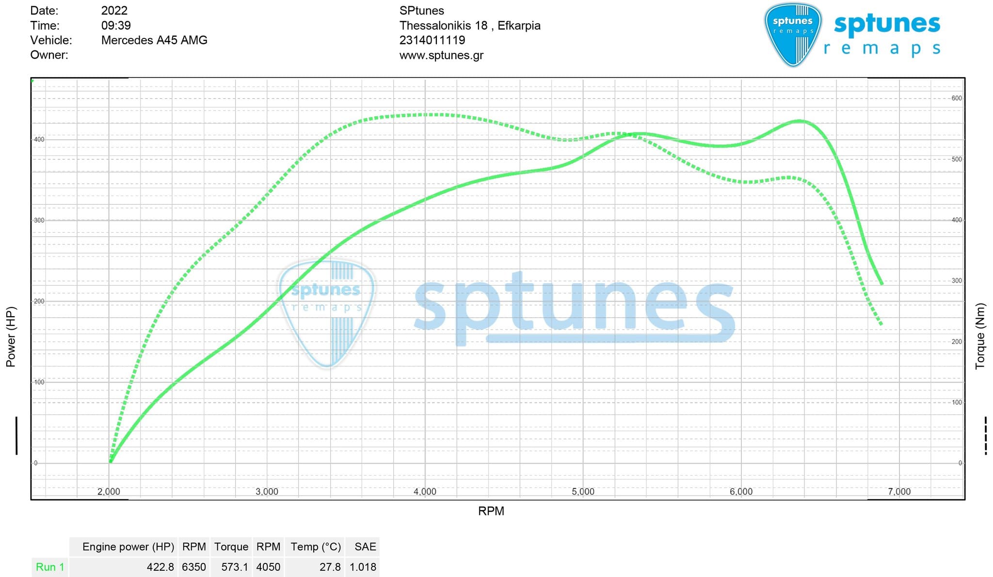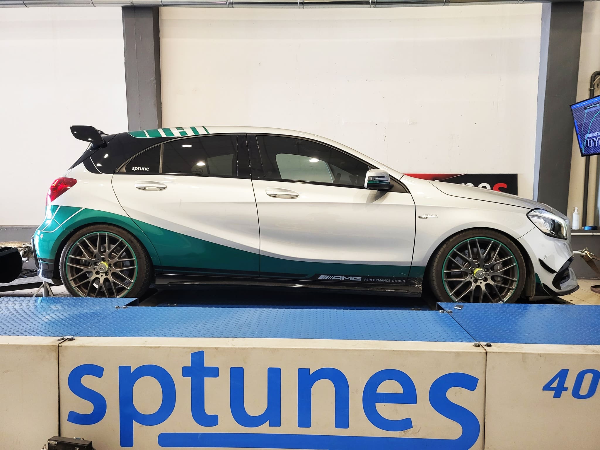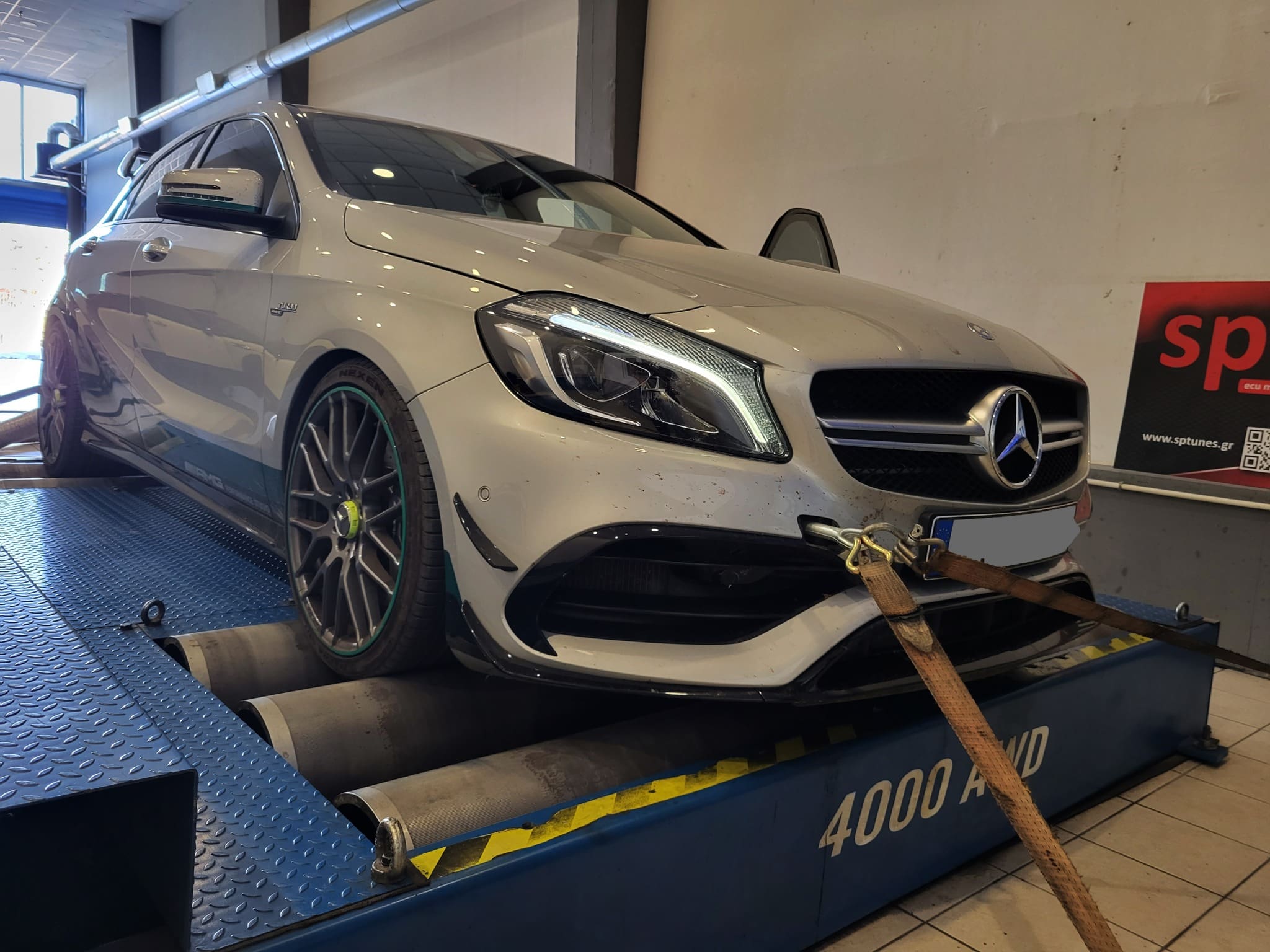 Έχουμε κάνει πολλά AMG με τον M133 κινητήρα με πολύ καλά αποτελέσματα! Το όμορφο Petronas A45 το κάναμε πριν 2 χρόνια και ήρθε για επανέλεγχο και δυναμομέτρηση μιας και δεν έγινε τότε. Ηταν ήδη προγραμματισμένο, ξέραμε όμως απο τα logs ακόμα οτι μπορεί να γίνει πολύ καλύτερο. Σε σχέση με τα άλλα πρώτα στάδια που πειράζουν σχεδόν τις ίδιες ρυθμίσεις, κάνουμε πολλές αλλαγές στο σύστημα μεταβλητού, το οποίο δεν εκμεταλλεύονται και πολλοί, με πολύ καλά αποτελέσματα! Το AMG φοράει downpipe με ελεύθερη εξάτμιση μέχρι πίσω, δουλεύει 2.1 bar πίεση και η δυναμομέτρηση έδειξε τα 423 άλογα με άφθονη ροπή 573 Nm παρά την πολύ ζέστη που επικρατούσε στο χώρο του δυναμομέτρου!